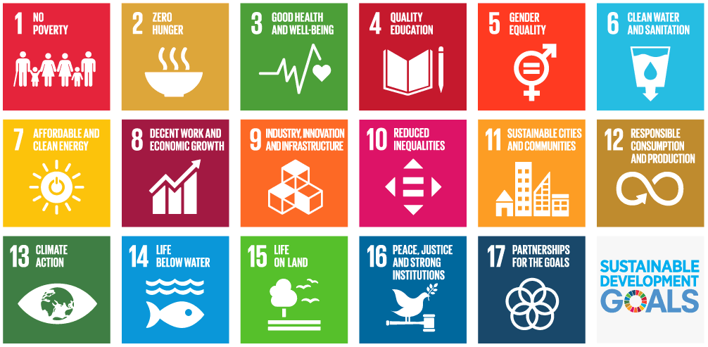 持続可能な世界を実現するための17のゴール・169のターゲットから構成され、地球上の誰一人として取り残さない(leave no one behind)ことを誓っています。